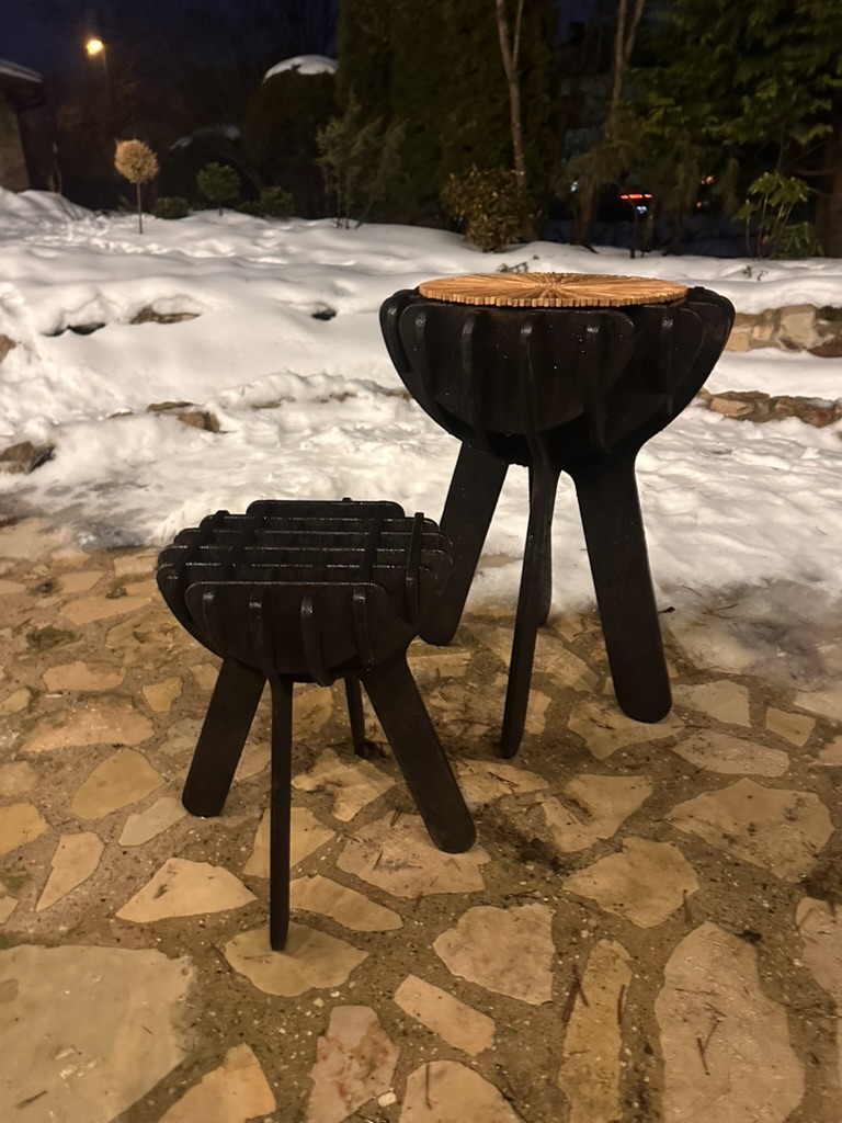 Aktīvā atpūta: Kompakts, viegls taburetes–galdiņa hibrīds balkoniem un mazākām telpām; ideāls kā papildsēdeklis iederās gan kafijas pauzei gan kā dizaina akcents telpā, ideāls statīvs stilīgai ziedu vāzei.